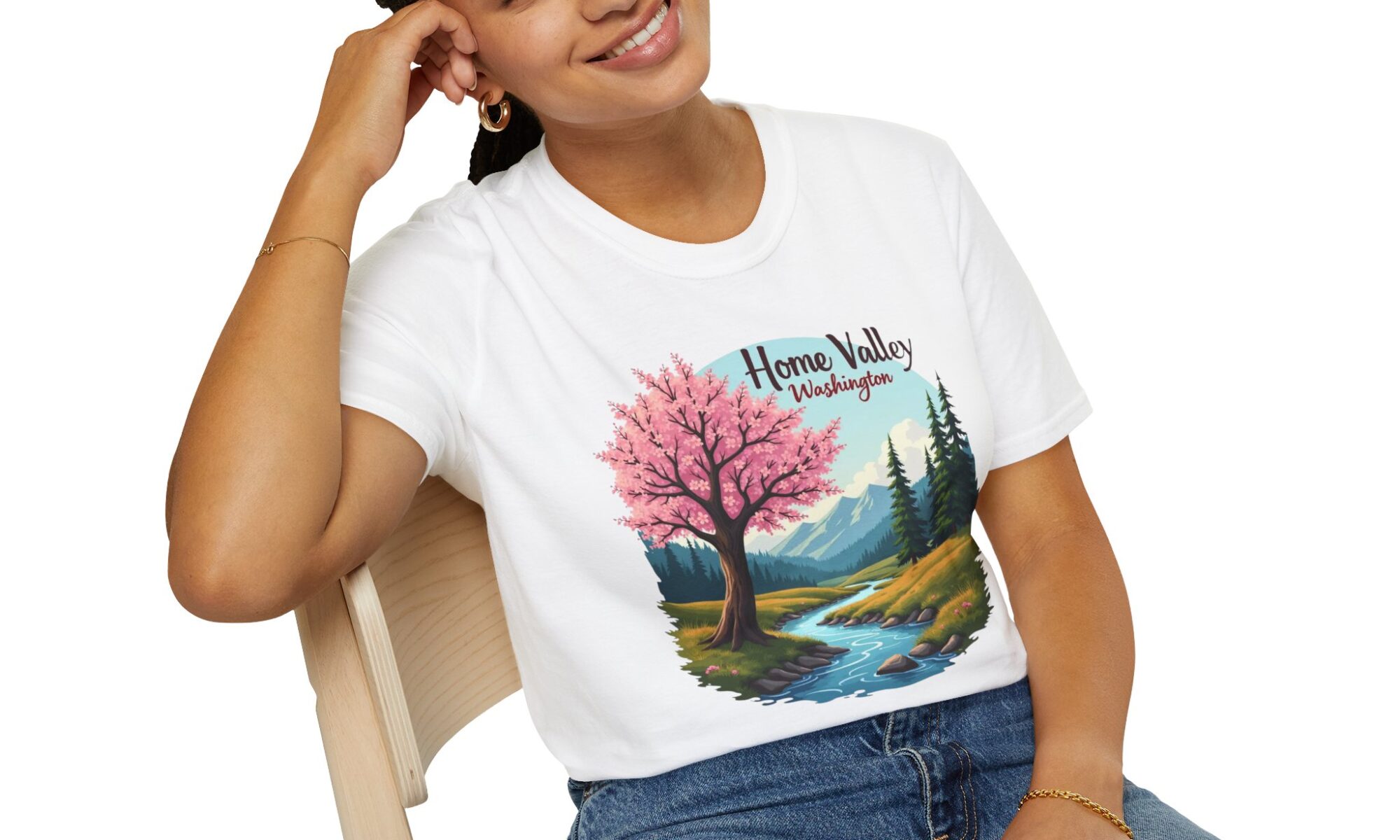 Be the first to review “Home Valley Washington Scenic T-Shirt — Mountain River Cherry Blossom Tee”